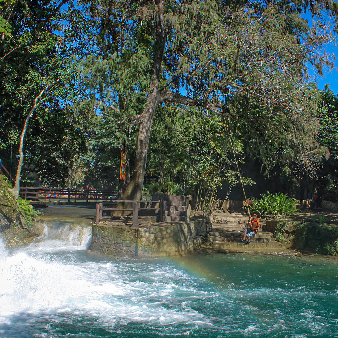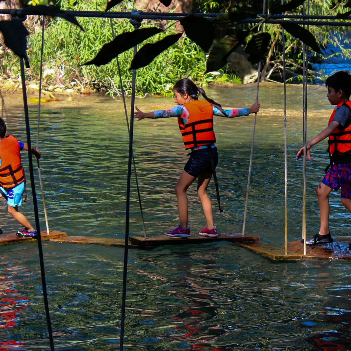 No es indispensable. Ofrecemos chalecos salvavidas sin costo adicional en el paquete Aventura Completa, o en renta por $60. Hay muchas zonas de poca profundidad donde puedes disfrutar sin saber nadar. Sin embargo, si planeas saltar desde las plataformas altas, sí es necesario saber nadar.