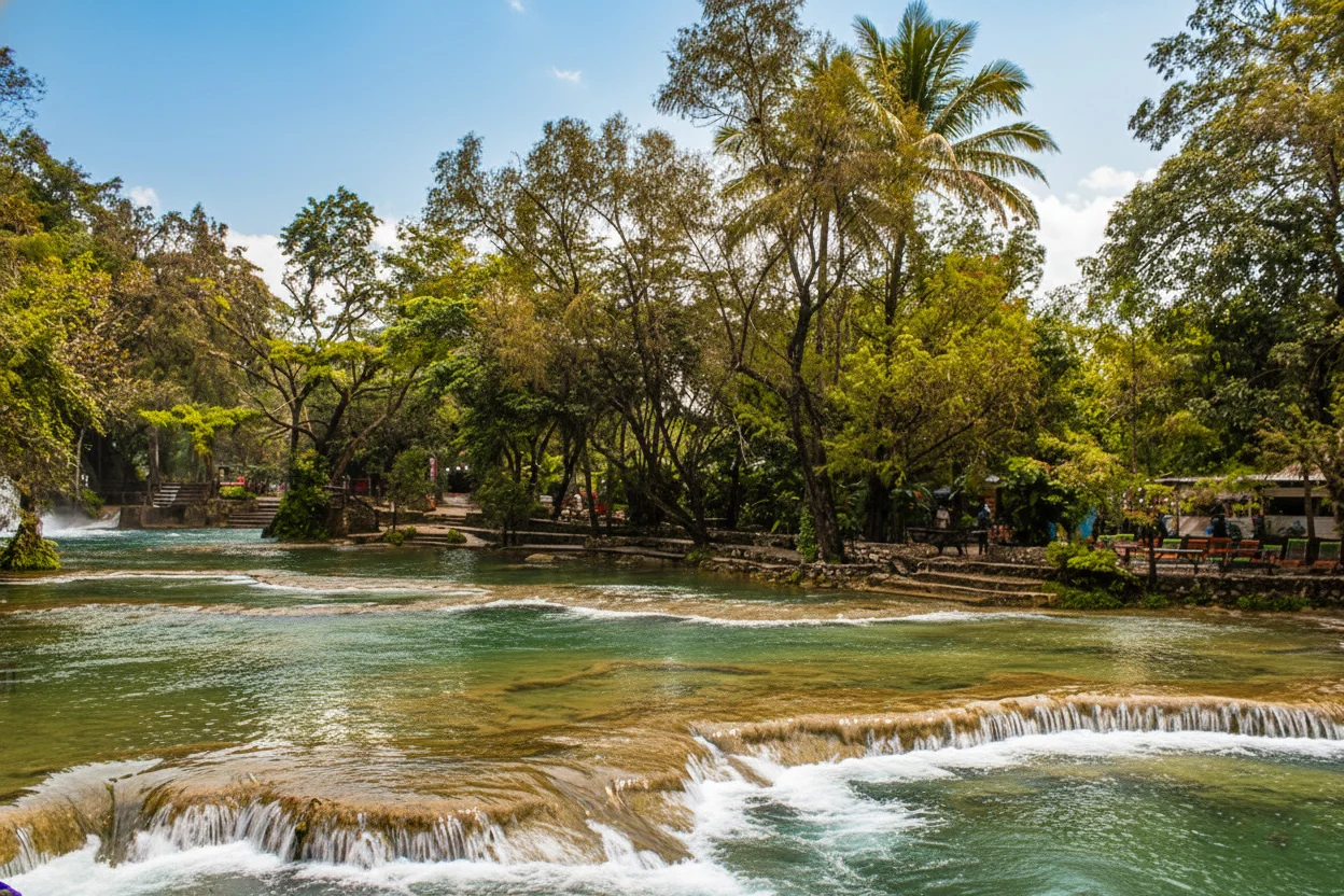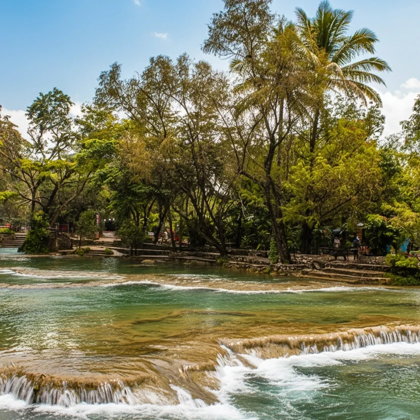 Nuestras cascadas no son de concreto. Son formaciones naturales con más de 20 metros de altura y aguas color turquesa, moldeadas por el caudal del agua durante cientos de años.