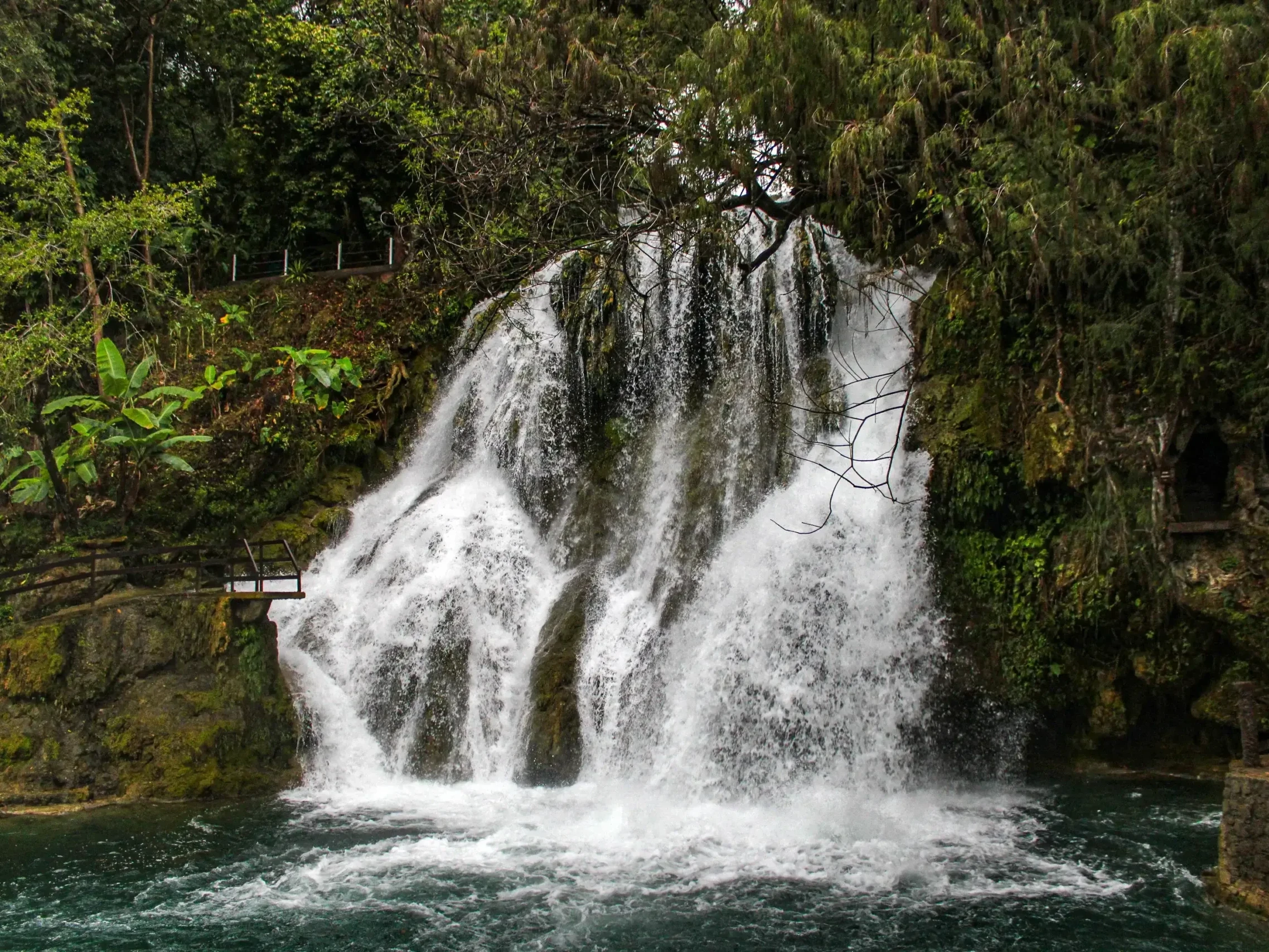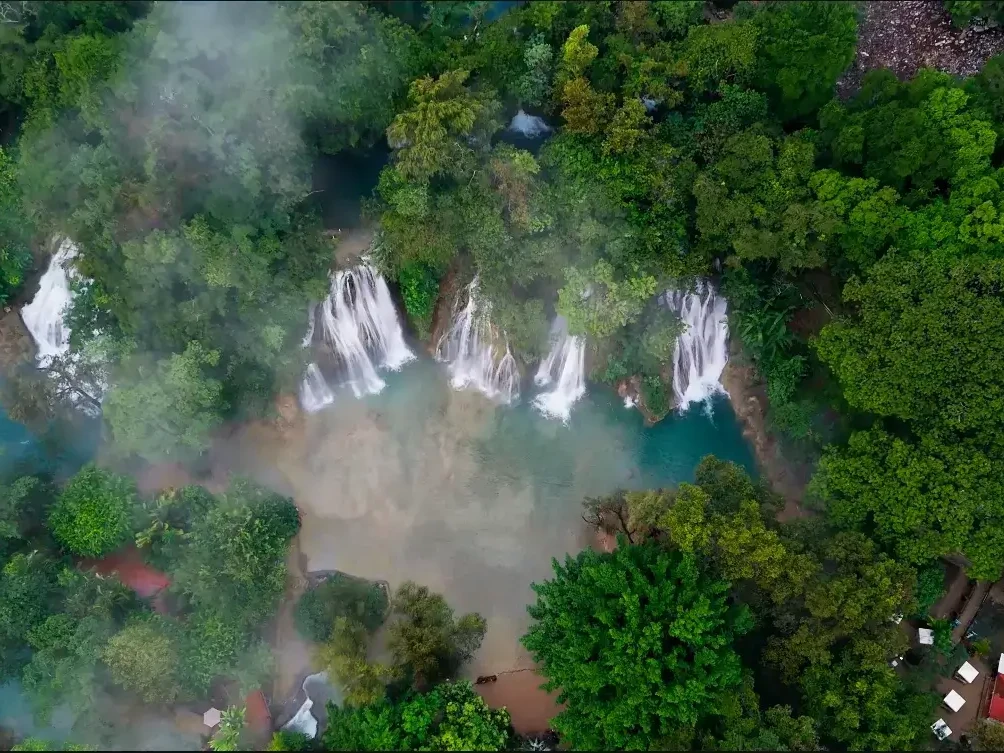 Tres cascadas principales y múltiples pozas de agua cristalina.